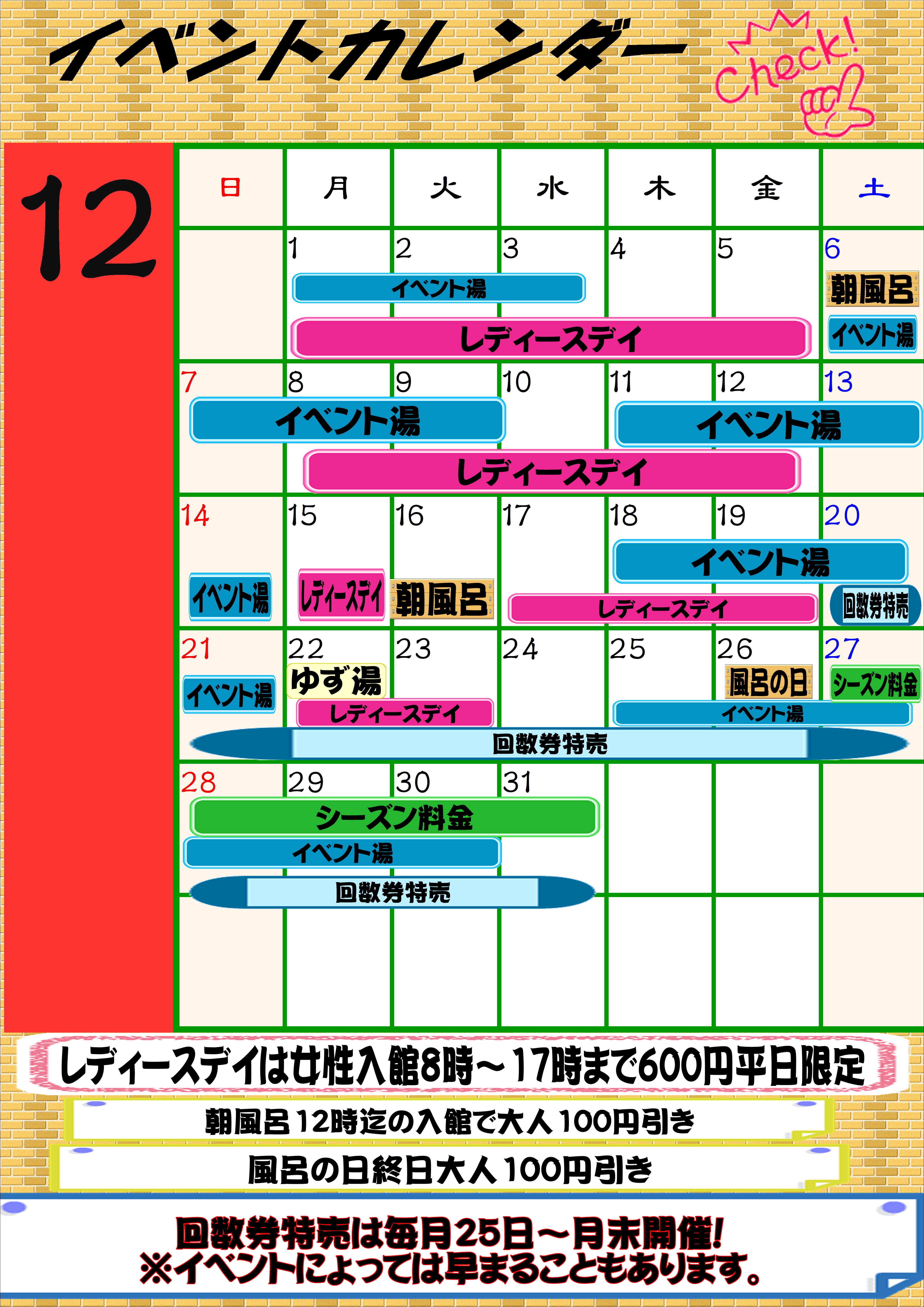 レディースデイの開催日はイベントカレンダーをチェック!!